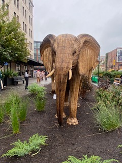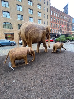 These 100 life-sized, intricately detailed elephants are on display through October. They were created by members of The Coexistence Collective, a community of 200 Indigenous artisans in India. These eco-conscoius sculptures are crafted from lantana camara (it reminded me of bamboo), a fast-growing invasive weed known to push animals out of their natural habitats.